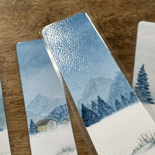 Marque-page unique réalisé à l’aquarelle puis plastifié pour lui permettre de durer dans le temps…