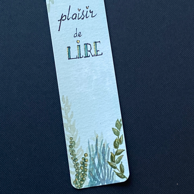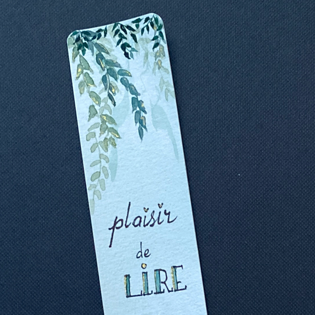 Marque-page réalisé à l’aquarelle avec des touches dorées.
