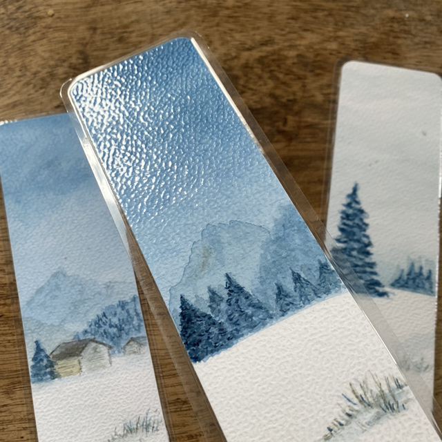Marque-page unique réalisé à l’aquarelle puis plastifié pour lui permettre de durer dans le temps…